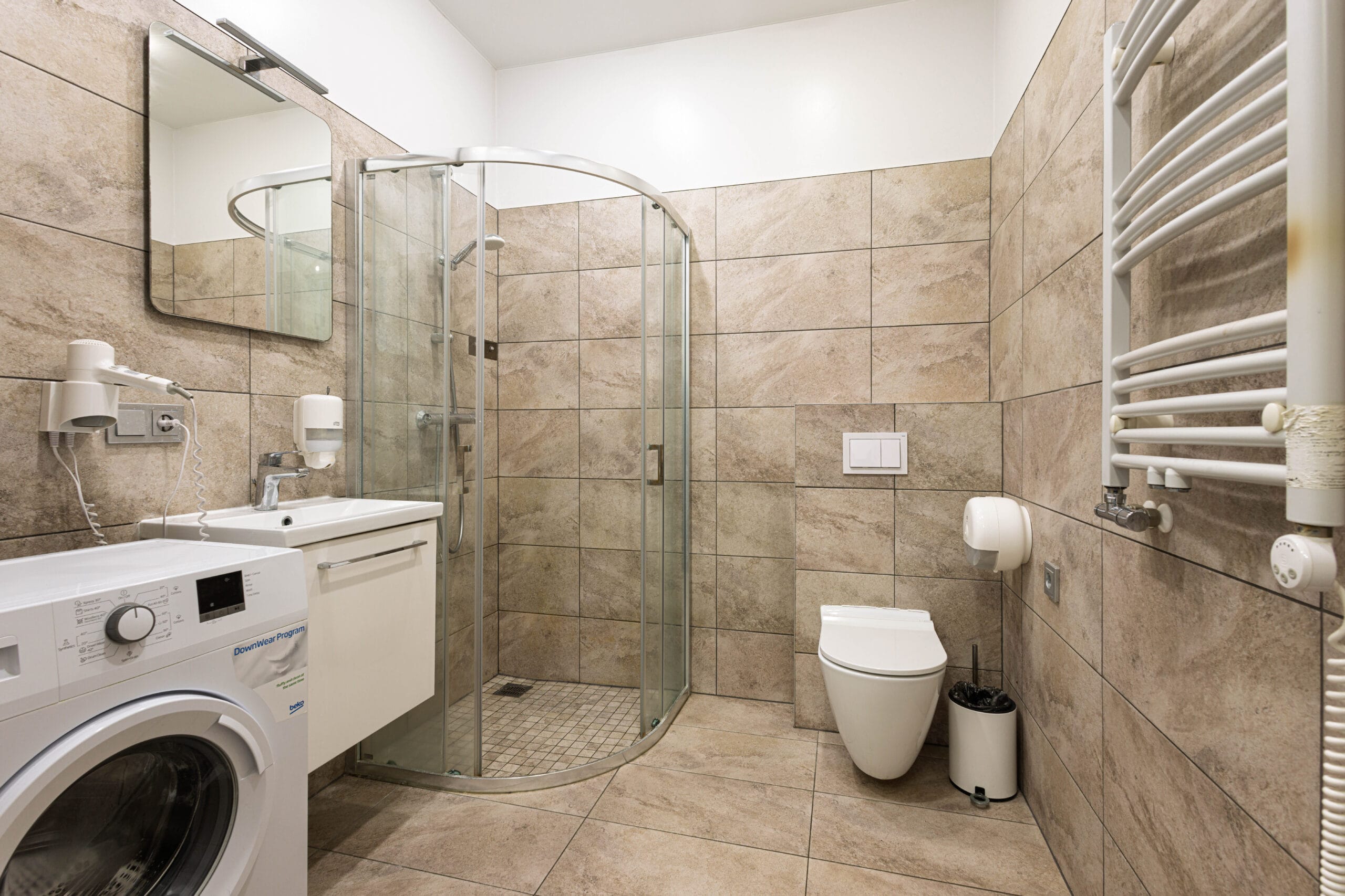 Įrengimas: visi apartamentai pilnai įrengti, kiekvienas turi atskirą sanitarinį mazgą